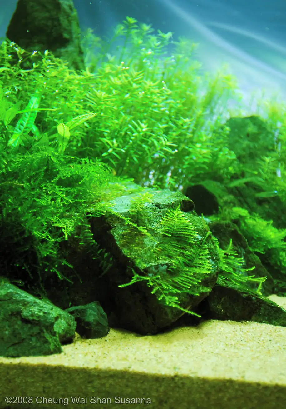 Superb rockwork and overall compoisition. The use of ferns and moss is very effective but some of the stems look a little too sparse. The fish also look almost invisible. These are minor niggles to what is otherwise an excellent aquascape - good work!