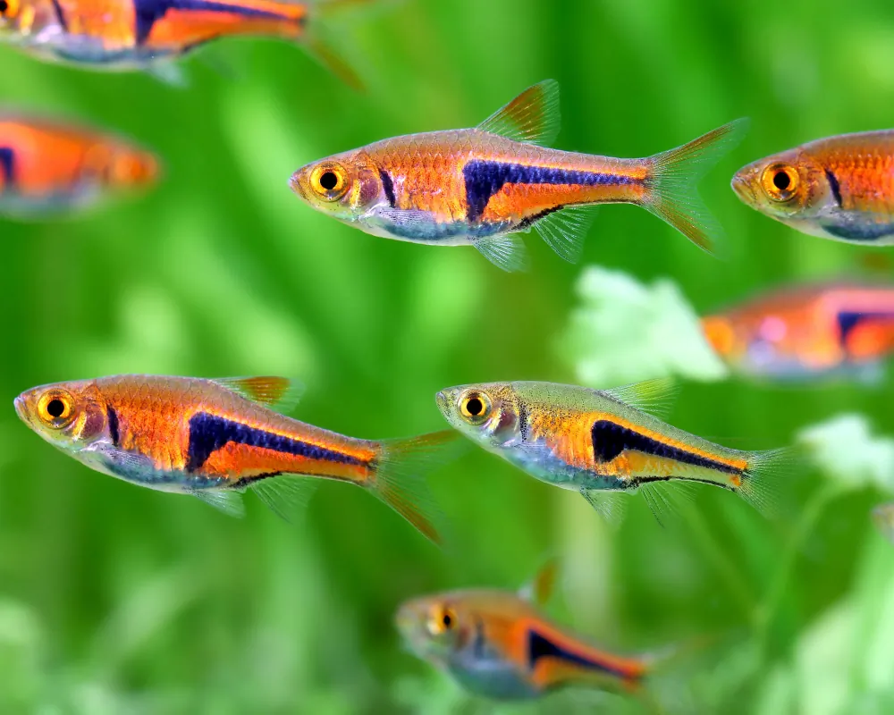 Given their small size, special consideration should be taken to provide the scarlet badis with an appropriate habitat. Small fish feel safe when they have hiding spaces. To mimic their natural habitat, a heavily planted aquarium is recommended as a home for the scarlet badis. This will allow all the fish to have adequate cover and places to feel safe. You can also recreate this with artificial plants and other décor items—just ensure adequate water flows through the various components so the tank water is aerated.