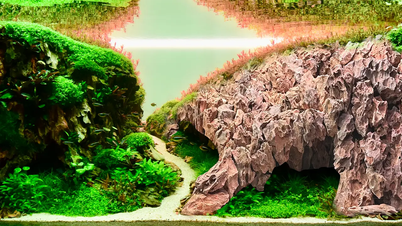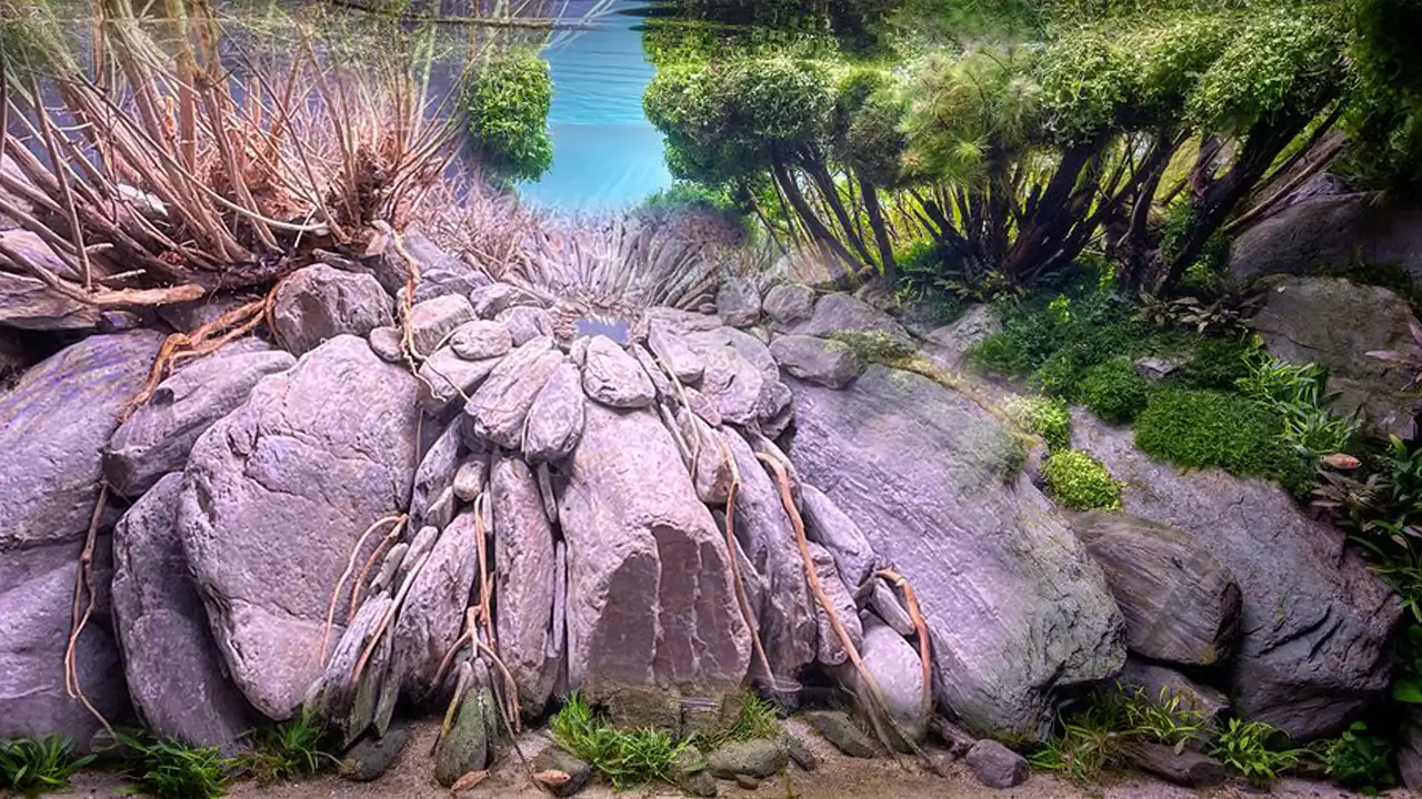 The Nature Aquarium style aims to create a scape that resembles a landscape or image from the natural world. Most common Nature Aquarium aquascapes depict underwater versions of rainforests, mountains, hillsides, beaches or valleys.