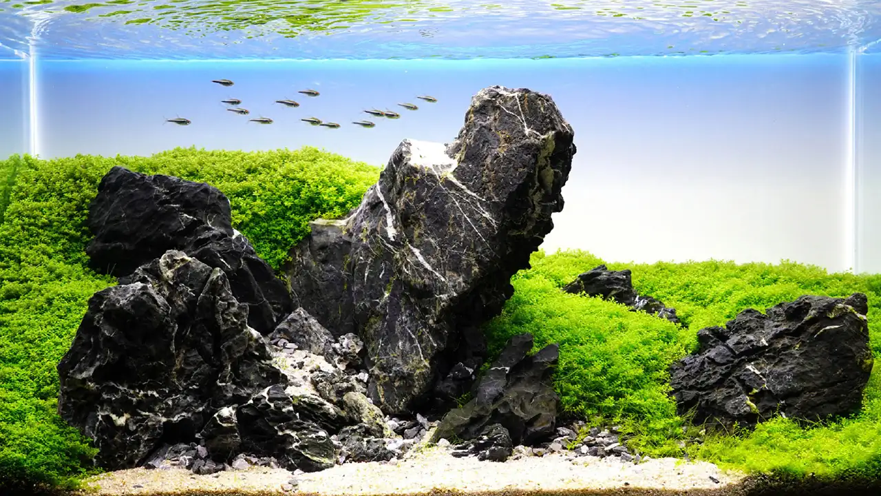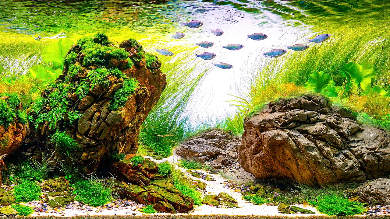 Iwagumi is all about calmness and a zen feeling. Inspired from the Japanese gardening style, this type of aquascape looks easy to create at a first glance.