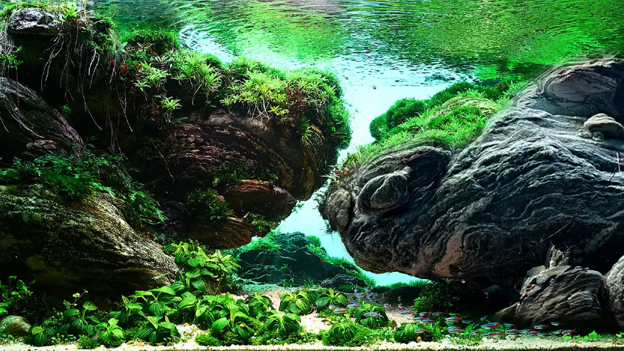 This aquascaping style was introduced by Japanese Takashi Amano in the 1990’s and it is characterized by a very natural look and feel.