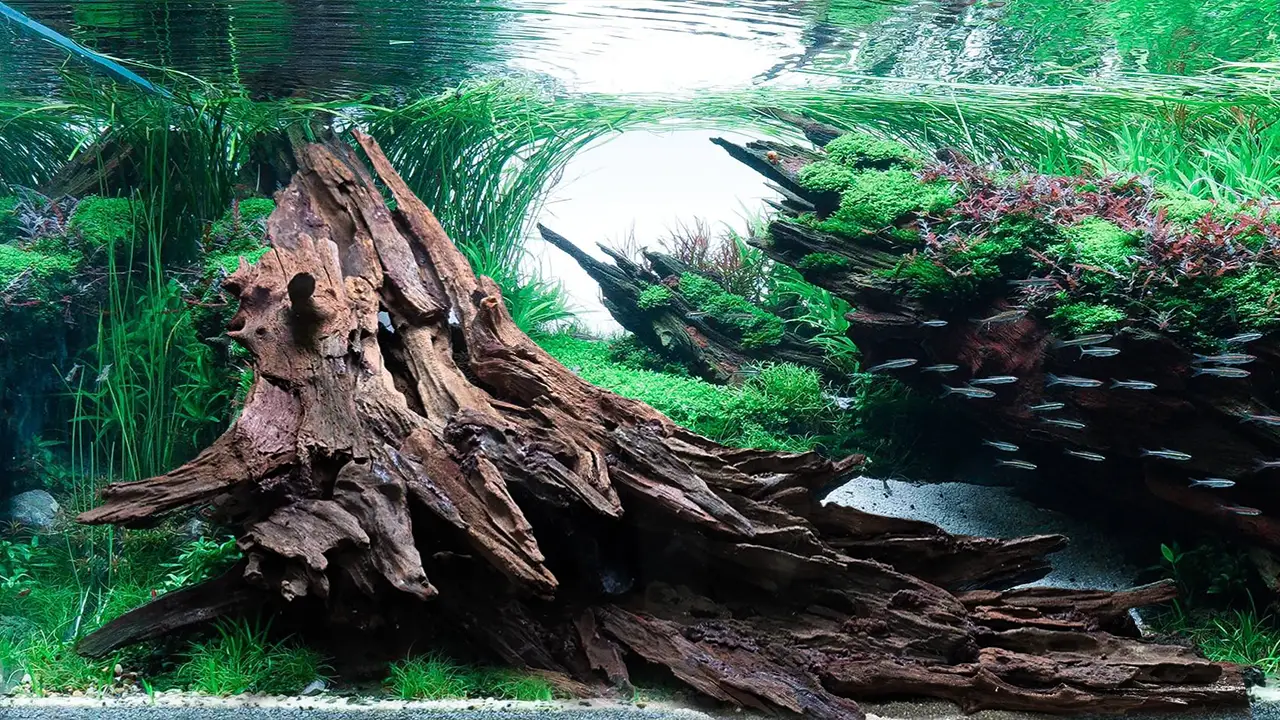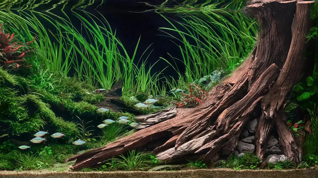 Both hardscape material (driftwood, rocks) and plants play an important role in the quest for balance in the aquarium.