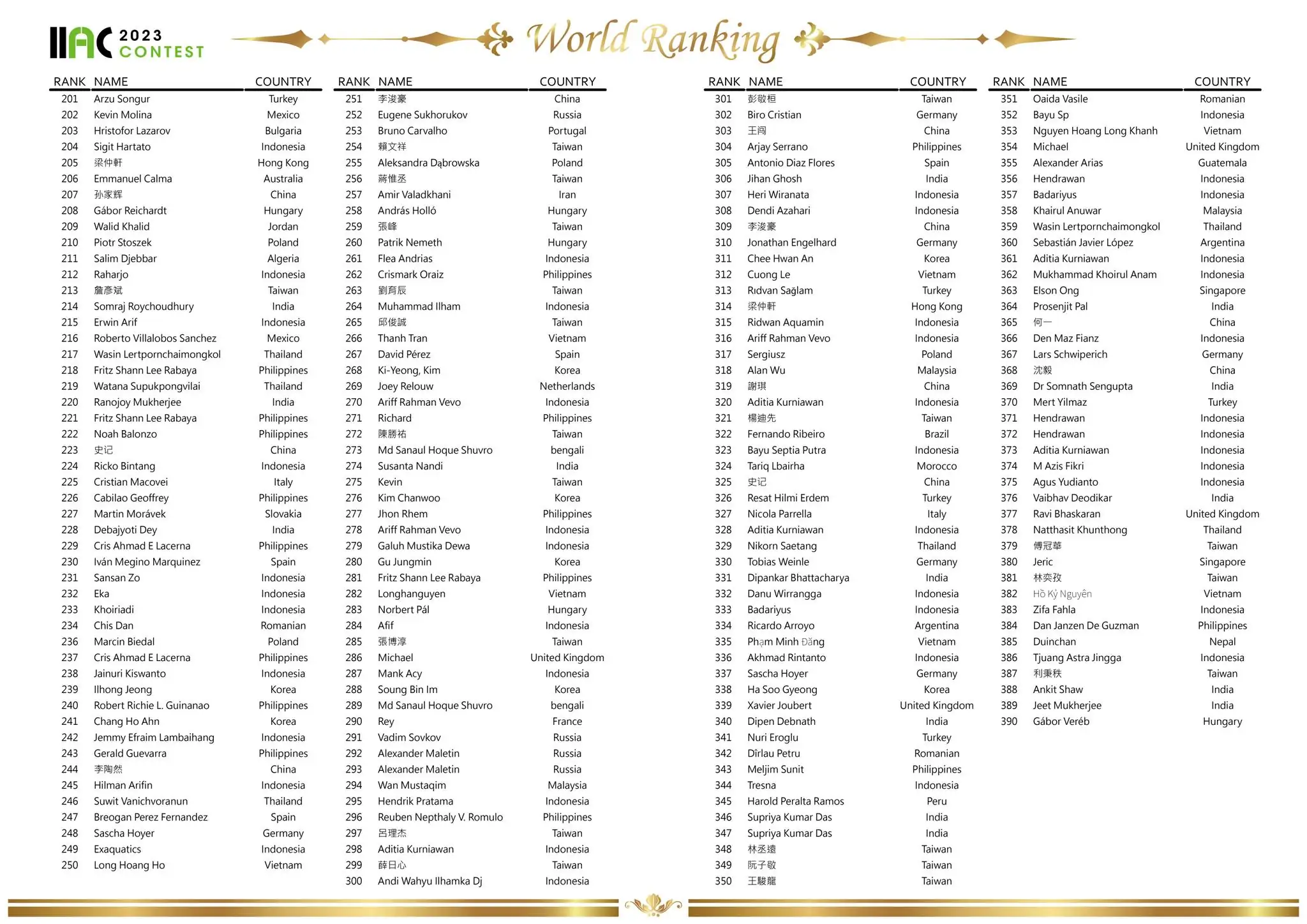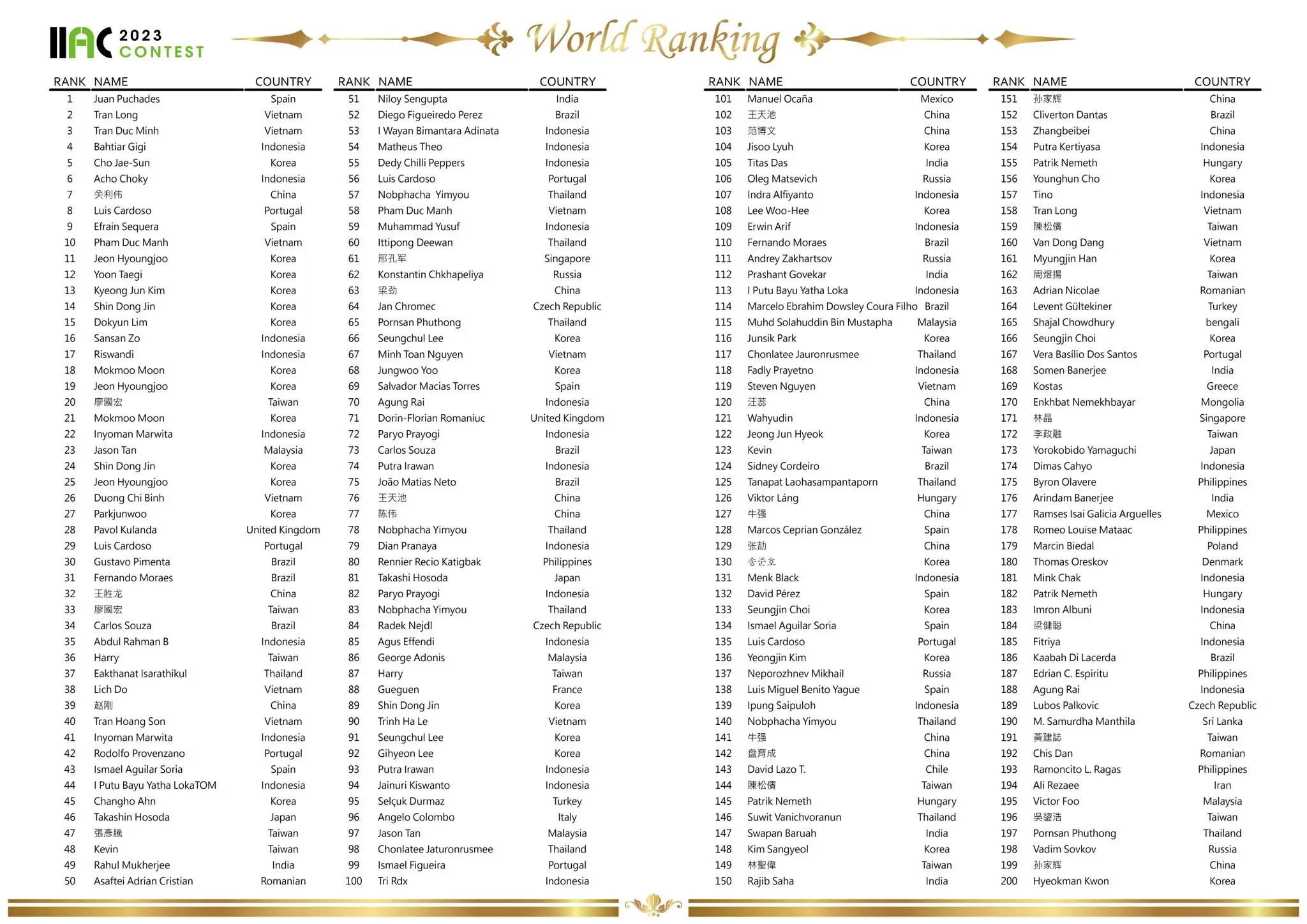 TOP 50 IIAC 2023 WORLD RANKING - UPDATING