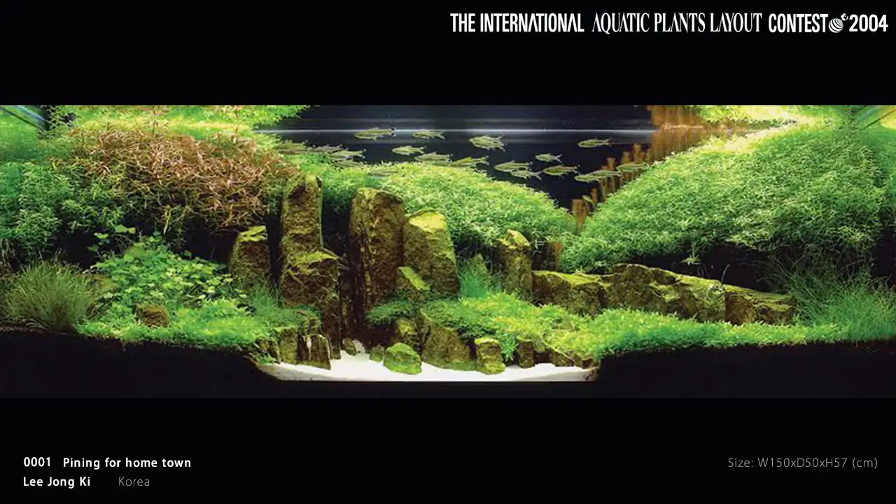 2004 - IAPLC #1 by Lee Jong Ki (Korea). Mr Lee is the first one that use vertical rock to create mountain-like structure. Similar concept has been adopted by many others with flying colors!